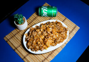€1295.00Carne de pollo o ternera servida sobre arroz con salsa....